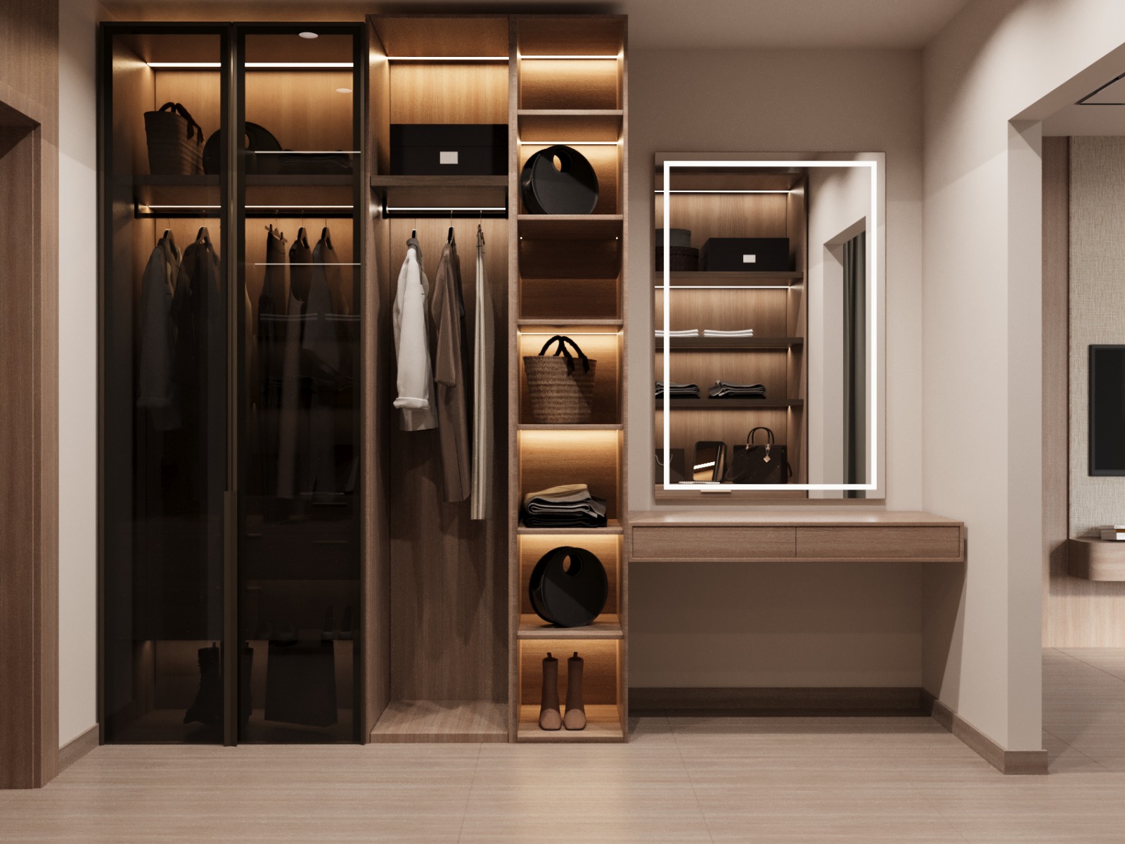 يهدف التصميم إلى خلق انسجام بصري وشعور بالاتساع عبر توزيع الإضاعة بعناية واستخدام خامات طبيعية ودرجات لونية متناغمة.