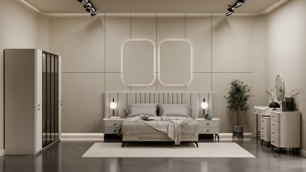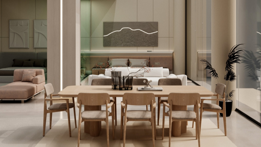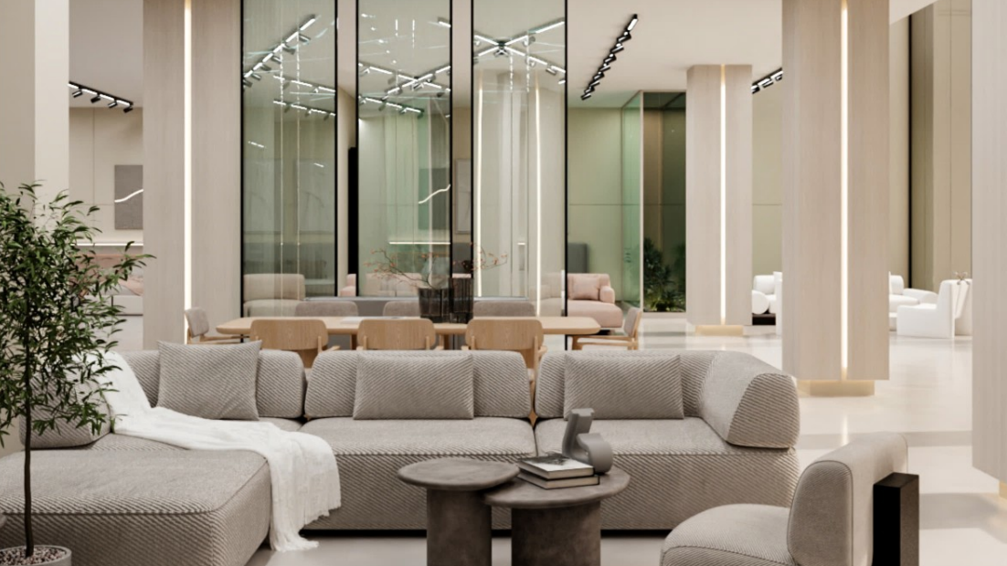 استخدمت الخامات الدافئة والإضاءة الموجهة لخلق تجربة حسية متكاملة تعكس فخامة العلامة وتميّز منتجاتها، فيما عززت التكوينات المعمارية العمودية والمستويات المتعددة الإحساس بالاتساع والتنظيم البصري